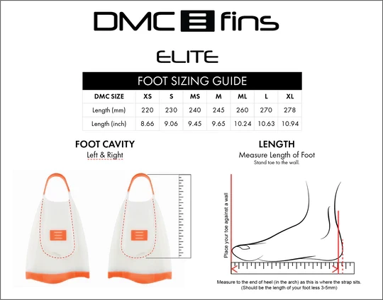 The DMC Elite fins were designed as all round swim training fins for pool swimmers. The short length blade offers similar power as a stiffer bladed fin due to the V Rail design which helps displace more water with both up and down kicks.