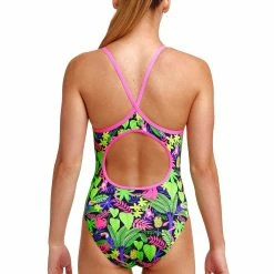 Funkita’s classic training style with signature diamond back strap finish and modest rear coverage is perfect for lap sessions. Features a circular cut-out back. With front lining and Funkita embroidery, this easy style says it all.