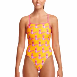 You’ll be sure to get noticed on pool deck in Funkita’s strappiest one piece yet! Single strap binds that criss cross down your back with a moderately high cut leg and full front lining.