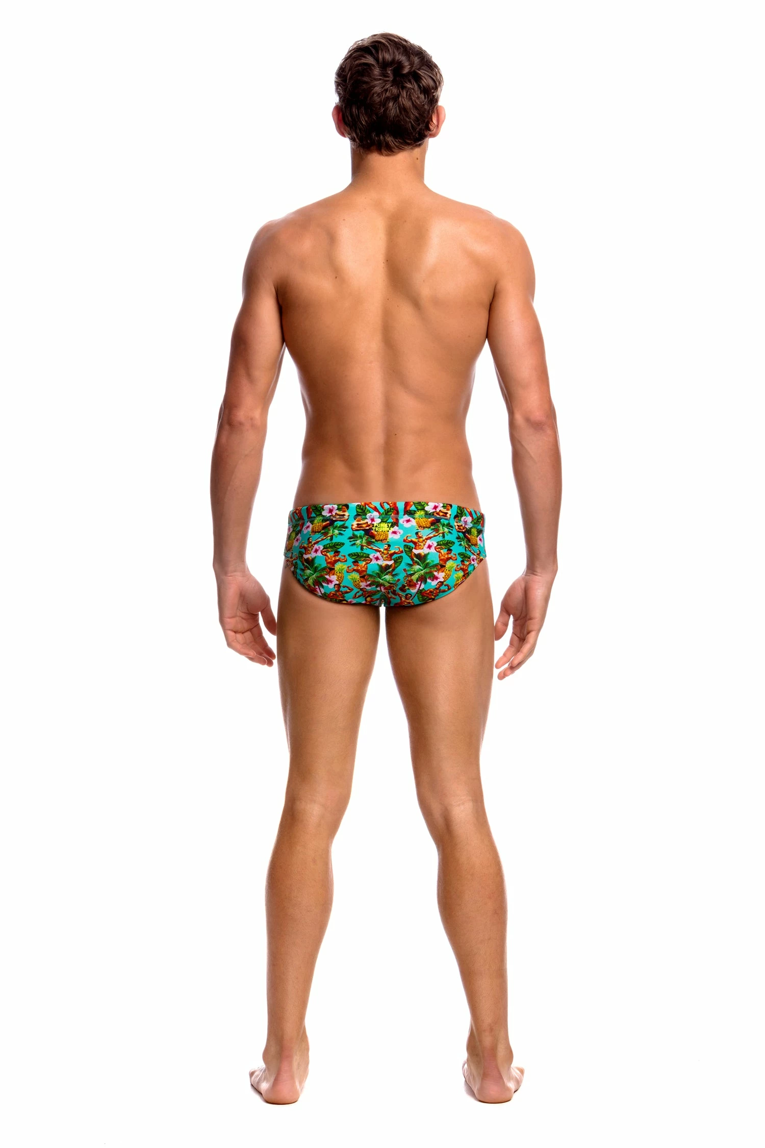 A classic cut brief with 8cm sides and flat elastic waistband and flatlock stitch finish. Drawcord, front lining and Funky Trunks embroidery come standard.